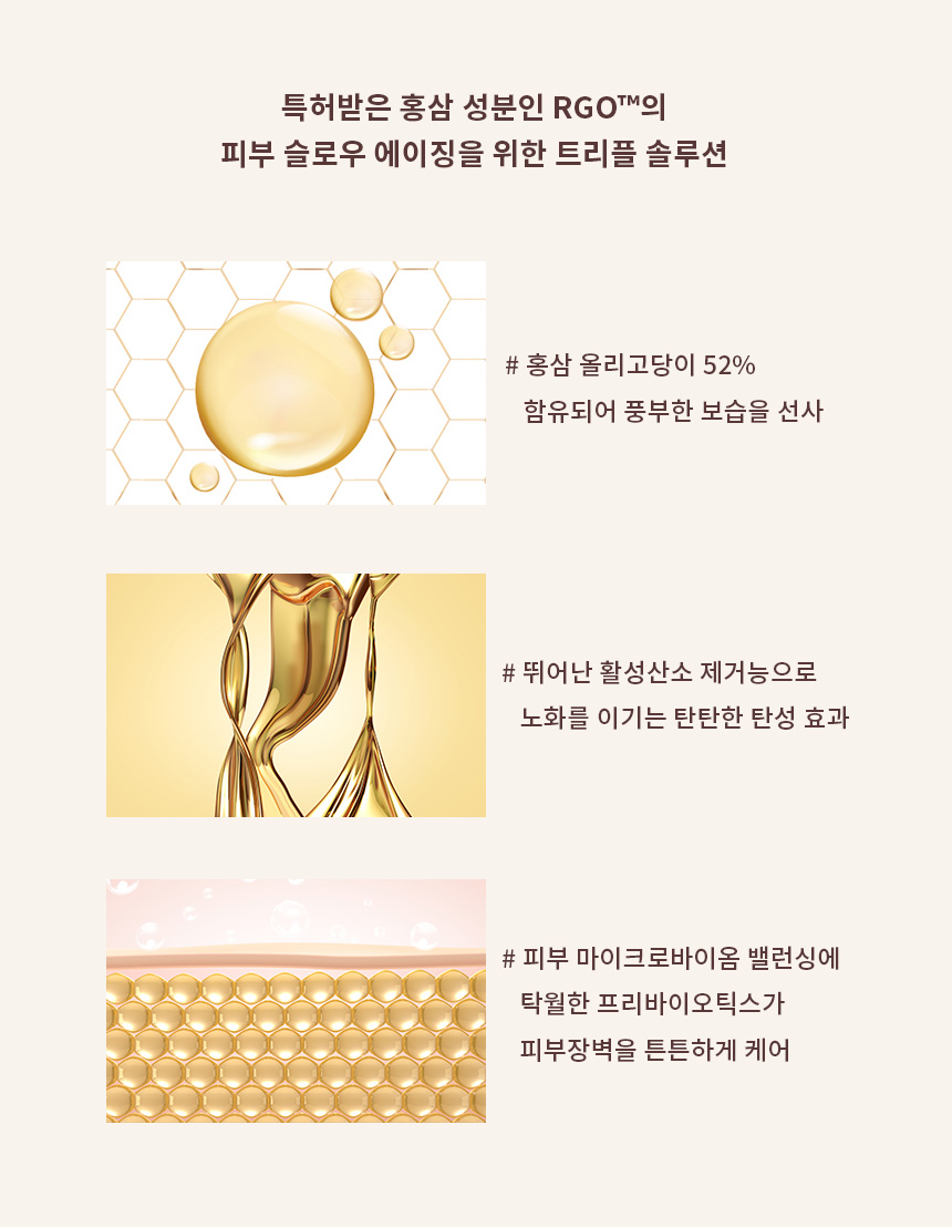 | 전성분 | 정제수, 부틸렌글라이콜, 1,2-헥산다이올, 나이아신아마이드, 트라이에틸시트레이트, 피이지-60하이드로제네이티드캐스터오일, 글리세릴카프릴레이트, 소듐하이알루로네이트, 홍삼추출물, 향료, 다이소듐이디티에이, 에틸헥실글리세린, 리모넨, 리날룰 |
